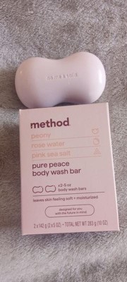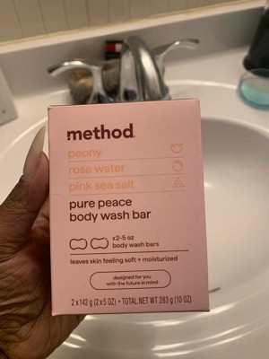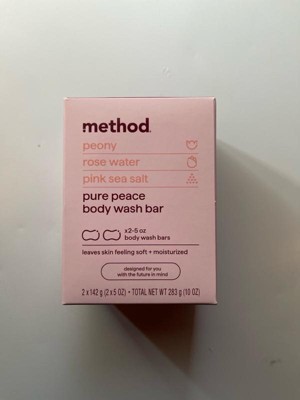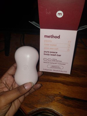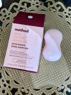 [This review was collected as part of a promotion.] I received these Method peony, rose water, and pink sea salt Pure Peace Body Wash Bars complimentary from Influenster in exchange for my honest feedback. And it smells so amazing. It has a nice lather, leaves skin soft, smooth, and moisturized. The bars come in a nice ergonomic shape making them easy to hold. I love the cute little quotes on each bar. It's made with all natural and clean ingredients. It's made without parabens, phthalates, and plastic. And it's cruelty free!