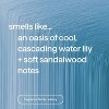 - with notes of cool, cascading water lily + sandalwood, this refill fills bottle 2.8x