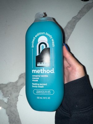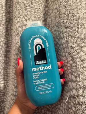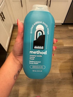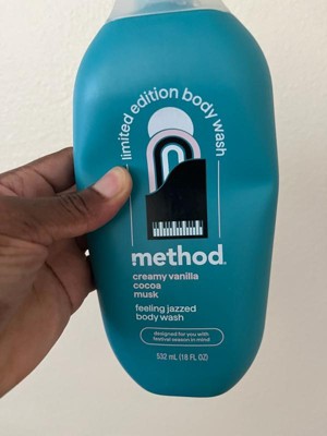 [This review was collected as part of a promotion.] I typically use the method simply nourish flavor upon receiving this. It is so good. Please keep this scent always versus a limited time. It smells like creamy vanilla but not too over powering. Cute design on the package and the gentle body wash kept me feeling clean and smells wonderful.