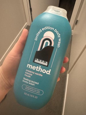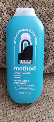 get festival ready with method. with notes of creamy vanilla, cocoa, and musk, this limited edition body wash leaves your skin feeling clean and smelling scent-sational. plus, with a cruelty-free formula that's made without parabens or phthalates and a bottle made with over 80% recycled plastic (PCR), you'll be ready for your sax solo. Packaging contains recycled content.
