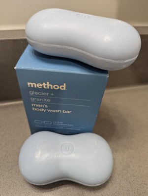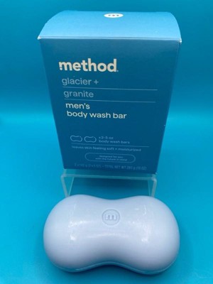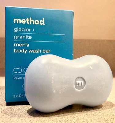 [This review was collected as part of a promotion.] I got METHOD Glacier + Granite Men's Body Wash Bar x2.5 Oz and me a female and my husband love this product because it is so easy to hold with it's ergonomic shape, it smells amazing, create such a rich lather leaving our bodies smooth, soft, clean, refreshed, and moisturized because it it's fantastic ingredients used into the product making our shower time a spa feeling time. We're really satisfied and happy to be using this a fantastic product and we highly recommend it.