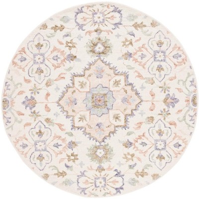 Discover the perfect touch of elegance and comfort for your space with our stunning 6' X 6' Round area rug, a captivating blend of ivory and pink hues that will elevate any room in your home. This round area rug is exquisitely crafted in India through a meticulous hand-tufting technique, ensuring each piece is uniquely beautiful.