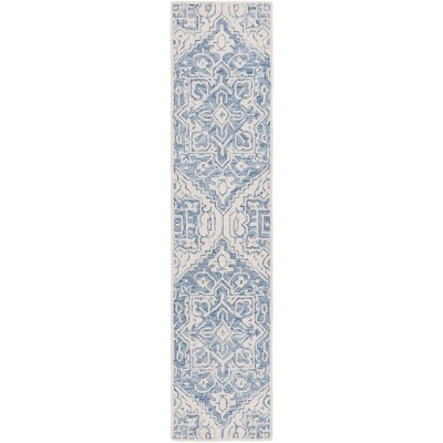 Whether your home is adorned with contemporary or classic furnishings, this Blue/Ivory Hand Tufted Wool and Cotton runner rug will seamlessly integrate with your aesthetic, offering both functionality and unrivaled style. Elevate your space with this enchanting addition that promises to be a conversation starter and a statement piece for years to come.