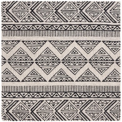 Expertly crafted in India, this rug boasts a captivating black and ivory geometric pattern that promises to enhance any room with its elegant and versatile design. The disciplined use of color brings out the intricate tribal-inspired motifs, offering both visual intrigue and a harmonious complement to a broad range of decors, from the contemporary to the classic.