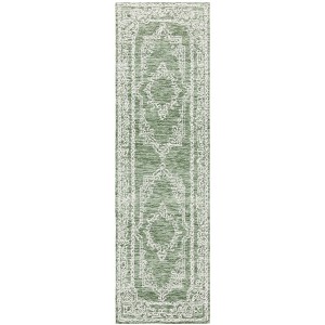 Its accent shape is ideal for creating an inviting nook or for complementing existing furniture. Exquisite and durable, this hand-tufted treasure is not only a feast for the eyes but also promises enduring quality and comfort. Bring a piece of Bharatian heritage to your doorstep with this stunning green and ivory area rug.