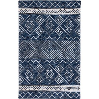 Crafted with the utmost care in India, this rug features a rich navy and ivory color palette that exudes sophistication and style. The wool and cotton construction ensures longevity and durability, while the latex backing provides stability and prevents slipping on various floor types.