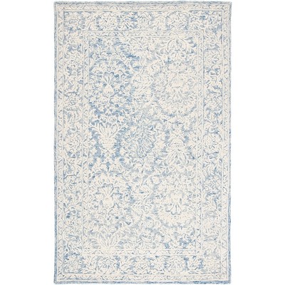 The charming blue and ivory color palette brings a serene and sophisticated look that seamlessly blends with various interior designs. The rug's pattern, inspired by traditional motifs, is intricately designed with thoughtful craftsmanship, showcasing an array of interlacing florals and ornate details that capture the eye and enchant the observer.