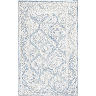 Transform your living space with our exquisite hand-tufted area rug, meticulously crafted in the vibrant hues of blue and ivory. Sourced from the finest materials in India, this small rectangle rug, measuring 4 feet by 6 feet, is an epitome of elegance and sophistication.
