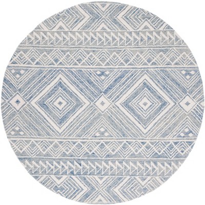 Introduce a touch of elegance to your home with our exquisite 6' X 6' Round area rug, designed to enrich your space with its serene color palette of blue and ivory. This hand-tufted treasure is meticulously crafted in India, using the finest Bharatian wool paired with cotton, supported by a robust latex backing for enhanced durability.