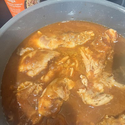 [This review was collected as part of a promotion.] Very good sauce, makes for an easy, flavorful weeknight dinner. The jar gives instructions for cooking in a pressure cooker. We cooked it with chicken in a slow cooker and it turned out well - 4 hours on low, then shredded the chicken. Great in a burrito or on its own with some rice and toppings of your choice. It is definitely a mild spice level, which I appreciated as someone with a low spice tolerance. I received an incentive to write this review.