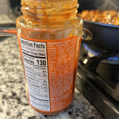 chicken stock from concentrate [water, chicken, salt, potato flour, natural flavor, dehydrated chicken broth, dehydrated carrot, spices, turmeric (color), rosemary extract], diced tomatoes (tomato, tomato juice, calcium chloride, citric acid), tomato paste, canola oil, chipotle chilies in adobo sauce [chipotle pepper, tomato puree, onions, distilled vinegar, canola oil, sugar, salt paprika (color), garlic], onion distilled vinegar, contains 2% or less of: chipotle chili pepper powder, cultured dextrose, garlic, garlic powder, maltodextrin, modified corn starch, onion powder, salt, smoked paprika, spices, sugar.' '