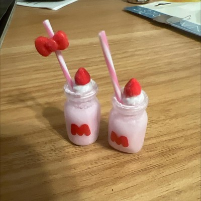 I got the strawberry shakes in the cutest little jugs/glasses! So cute! However the little jugs were deformed and won't stand on their own. So disappointing 😞