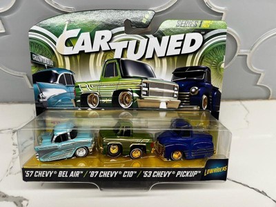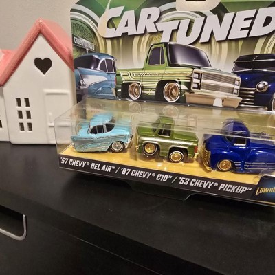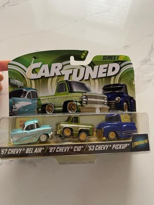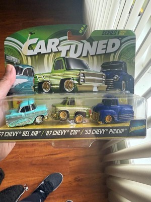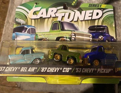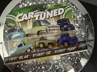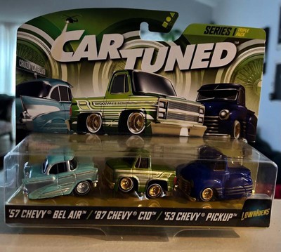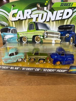 [This review was collected as part of a promotion.] I received Car Tuned series one it included three diecast cars of 57 Chevy Belair the next one was an 87 Chevy C 10 and the third one was a 53 Chevy pick up and let me tell you they are absolutely gorgeous lowrider style they have authentic wheels they make the cars look so real The metal bodies are sturdy and durable. This is for both play and display. They are absolutely gorgeous. I love them.