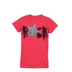 Fashion rocks and this top is the perfect top to rock out in. Dark pink fitted shirt with graphic writing, "Rock", in center. The center star shines bright in a silver graphic print. Pair this top up with jeans, leggings or a fun skirt. Perfect top for everday wear or to go to a special party event.