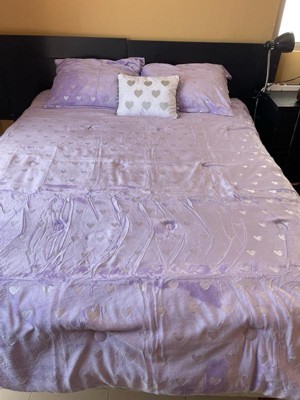 [This review was collected as part of a promotion.] I am in love with the super soft design, the quality of the fabric, very comfortable to the touch, the size fits perfectly on the mattress and with some very pretty details that give it the perfect touch, the color is lilac and the hearts are silver, the quilt came with two pillowcases and a decorative cushion.