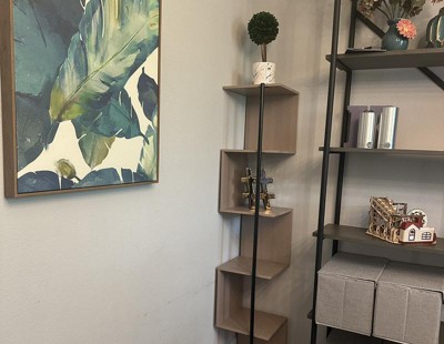 Hi Kiki! Thank you for your great review! We're glad to hear the corner bookshelf fits perfectly with your decor and was easy to assemble. It's wonderful that it provides plenty of space for your books and collections. Enjoy your new addition!