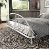 Introducing this sleek and modern metal platform bed, designed to infuse your bedroom with a touch of Mid Century Modern elegance. Crafted with durable metal, this bed frame ensures longevity and stability, providing a reliable foundation for a restful night's sleep. The headboard and footboard feature an attractive arched design with vertical bars, adding a minimalist charm that effortlessly complements various decor styles. The curved wingback headboard adds an extra layer of sophistication, making it a standout piece in any room. This metal bed is not only stylish but also highly functional. The sturdy slats offer excellent support for your mattress, eliminating the need for a box spring and ensuring a comfortable sleep experience. With a low profile design, it creates a modern, streamlined look that enhances any bedroom aesthetic. The open space beneath the bed provides additional storage options, making it ideal for smaller rooms or for maximizing space in any setting. Available in 2 finishes-classic black and crisp white-this bed effortlessly blends with any color palette, allowing you to customize your space to your liking. Its robust construction and modern design make it a timeless addition to your home. Elevate your bedroom decor with this stunning metal platform bed, where contemporary style meets practical functionality. Experience the perfect blend of durability, style and convenience with this exceptional bed.