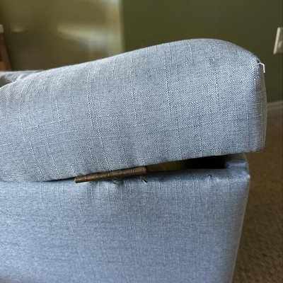This ottoman was not exactly easy to put together. It took three humans each with two arms and one with a power drill to put this together. We were able to get most pieces attached, but the two hinges/arms that would hold the lid up. We ended up detaching them because they don’t close/fold up. The springs were stuck in place. My fault for not noticing also that the legs are plastic and not wood. Had I known any of this, I would have opted for a different ottoman.
