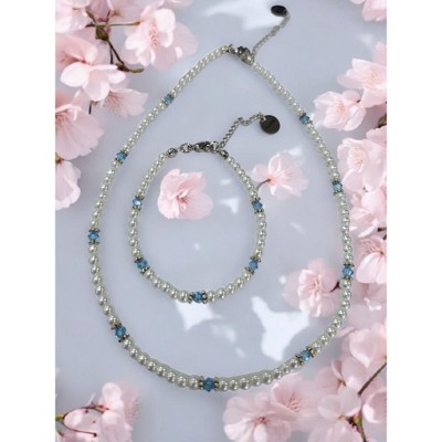 - Features genuine aquamarine gemstones in bracelet, necklace and earrings.