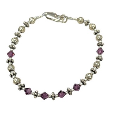 Let your child's imagination soar with this enchanting crystal bracelet. This delightful accessory features a combination of vibrant crystals in amethyst, aquamarine, and pink, strung together on a durable steel cable with sterling silver beads and lobster clasp. The bracelet is designed to spark creativity and joy, making it the perfect gift for any occasion.