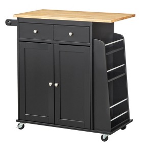 - Transitional kitchen cart features a towel rack and a spice rack with 2 locking casters