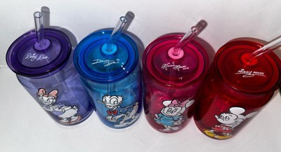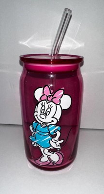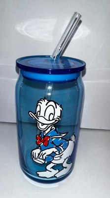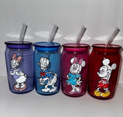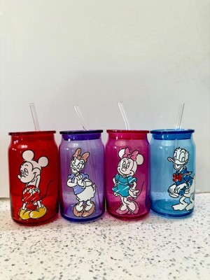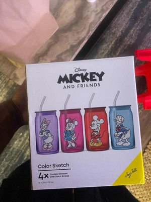 Mickey & Friends Color Sketch Can Glass w/ Lids & Straws, 16oz set of 4