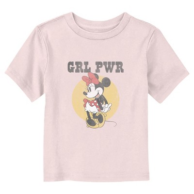 • The smallest family members are also the most stylish with this new toddlers' t-shirt that is perfect for every occasion! FeaturingMinnie in an adorable pose along with the phrase: "Grl Pwr" in bold black letters above her.