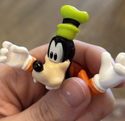 - Includes: Disney Mickey Mouse, Minnie Mouse, Daisy Duck, Donald Duck, and Goofy articulated toy figures; Pluto toy figure, seesaw, backpack, slide, boat, and fishing rod.