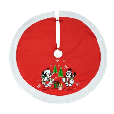Give your Christmas Tree a finished look with this officially licensed Mickey and Friends Christmas Tree skirt. The classic red fleece fabric features quality embroidery. The plush fur edge helps it lay beautifully.