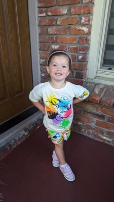 Cutest summer outfit ever! Love that it’s Mickey and bright colors. My daughter loves wearing it out. It’s comfy and washes well too! My daughter’s new favorite outfit that she wares all the time ! Want to buy more of these.