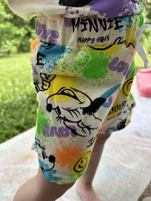 Mickey Mouse & Friends Minnie Mouse Little Girls T-Shirt and Active Retro Dolphin French TerryShorts Outfit Set Rainbow Paint Splatter 6