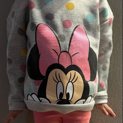 Officially licensed Disney Minnie Mouse toddler girls cute and stylish long sleeve graphic sweatshirt and leggings