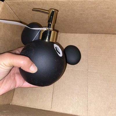 Mickey Mouse is an icon around the world. Now you can bring that lovable mouse to the kitchen or the restroom. This Disney hero knows that importance of proper hygiene or moisturizing. This amazing dispenser would look great in any room in the house. This soap and lotion pump is part of a larger Mickey Mouse bath collection here at Target. It consists of resin. This soap pump measures 7 inches high by 4 inches wide. Hand wash only and air dry.