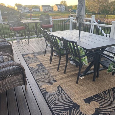 So perfectly Disney! I have this outside on my covered patio. It’s warms up the space and makes it so cozy!!! The olefin fibers make it perfect for outdoor and indoor use!!!