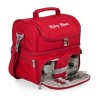 - READY TO SERVE - Includes a picnic set with stainless steel silverware, s & p shakers, and 100% cotton napkin stowed in the zippered front pocket, plus zippered mesh pockets on the sides for storage;