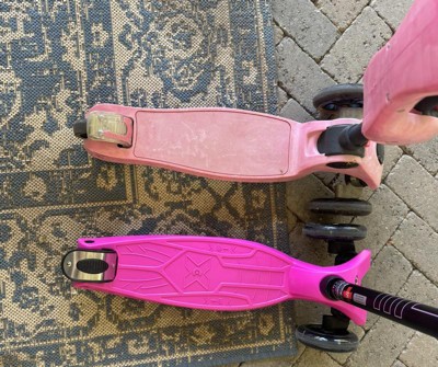 • A: Hi! The Maxi Kick LED scooter sold at Target is very similar to the Maxi Deluxe LED. The two major differences are only cosmetic: the T-bar and deck. The Maxi Deluxe LED has a colorful T-bar to match the deck and the deck has our "Micro" logo. The Kick version has a black handlebar with some color accents and a plain, plastic deck. I hope this helps! Let us know if you have other questions. info@microkickboard.com 888-236-5657