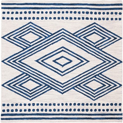 Discover the beauty of contemporary design with our stunning hand-tufted wool area rug. Sized at 5 feet by 5 feet, it complements any space with its refined navy and ivory tones. Crafted in India, this square rug has a sleek height of 1/8 inch, offering a stylish yet subtle addition to your home decor. The weave technique enhances its visual appeal, making it a preferred choice for those who appreciate artistry in their living spaces. This rug brings elegance and warmth, enriching your room with its sophisticated charm, ideal for both modern and traditional settings.