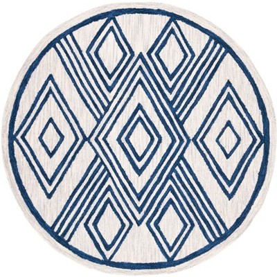 Discover the elegance of our round area rug, where traditional style meets modern charm. Measuring five feet across, this light blue and ivory masterpiece blends effortlessly into any space, adding a touch of sophistication. Expertly hand tufted in India, the rug boasts a blend of 80 percent wool and 20 percent cotton. These materials provide a soft texture and natural warmth. With a subtle 1/2 inch height, it enhances comfort while maintaining a clean silhouette. Embrace the simplicity of a pattern-free design, allowing your decor to take center stage. Perfect for living rooms, bedrooms, or dining spaces, this rug invites tranquility and understated luxury. Upgrade your home with a piece that speaks of subtle beauty and craftsmanship.