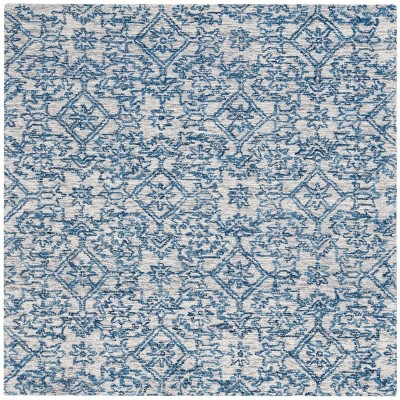 Introduce a touch of artistry and warmth to your space with our hand-tufted area rug, perfect for adding a bohemian flair. Measuring 5 feet by 5 feet, its square shape and low 1/4 inch height make it a versatile addition to any room. Crafted in India from a blend of wool and cotton with latex backing, this rug offers a soft and comfortable feel underfoot.