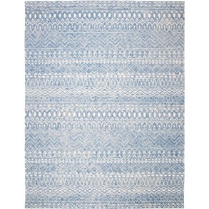 Transform your space with this beautiful Bohemian area rug, crafted with a unique blend of wool and cotton. Measuring 8 feet by 10 feet, this large rectangular rug features a striking blue and ivory geometric pattern, adding a touch of elegance to any room. The hand-tufted weave technique ensures attention to detail, and the quarter-inch height provides a comfortable underfoot feel. Originating from India, this rug seamlessly blends tradition with modern style. It is an ideal piece for those looking to add warmth and character to their living space. Embrace both style and craftsmanship with this exquisite rug choice.