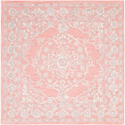 Transform your space with this charming 3 foot by 3 foot square rug in a delightful pink and ivory palette. Crafted using hand tufted techniques in India, this rug beautifully combines the warmth of wool and cotton with latex backing for added stability. Its low profile of 1/4 inch makes it perfect for any area. Embrace the bohemian spirit with its geometric pattern that adds a touch of artistic flair to your decor. Ideal for enhancing cozy corners, this rug blends style and comfort effortlessly. Rediscover the joy of home decor with a piece that inspires creativity and warmth.