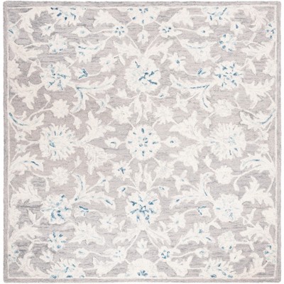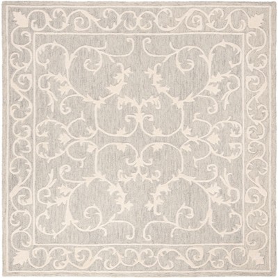 Elevate your living space with this exquisite square area rug. Measuring 5 feet by 5 feet with a height of one-fourth inch, it fits perfectly in any room where sophistication is desired. The light grey and ivory tones blend seamlessly with diverse decor styles. Crafted with care in India, this rug features a traditional oriental pattern, meticulously hand tufted from a blend of wool and cotton with latex backing. The delicate design adds a touch of timeless elegance to your home. Whether placed in the living room, bedroom, or dining area, this rug brings both beauty and comfort to your floor.