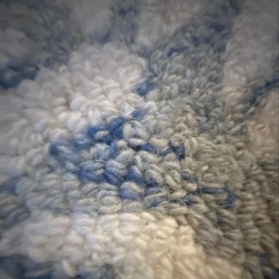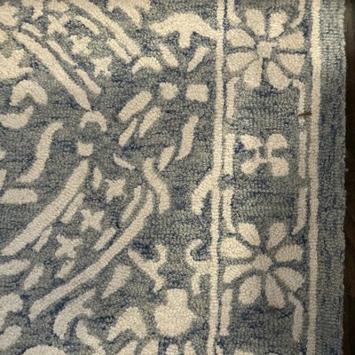 A beautiful rug with true light blue tones (no teal ) and cream. Appears to be very a good quality wool rug, soft and cushy. It is a looped rug (they call it microloops) so may not do well in a high traffic area (I would worry about snags). We like it so much that we are re-ordering it in a bigger size for our bedroom.