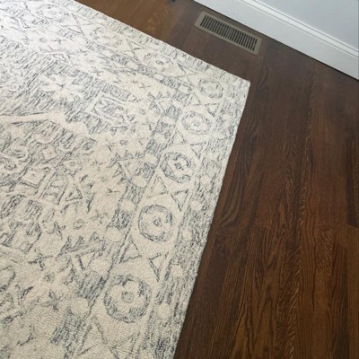 Elevate your living space with this exquisite 5 by 8 foot area rug. Designed in a harmonious blend of charcoal and ivory, this hand tufted piece showcases the timeless beauty of traditional style. Made with a blend of wool and cotton with latex, it offers a gentle touch and subtle warmth underfoot. The medium rectangular shape and 1/4 inch height make it a versatile addition to any room. Crafted in India, this rug features a stunning oriental pattern that enriches your decor with depth and charm. Add this elegant rug to your home to create a serene and inviting atmosphere.