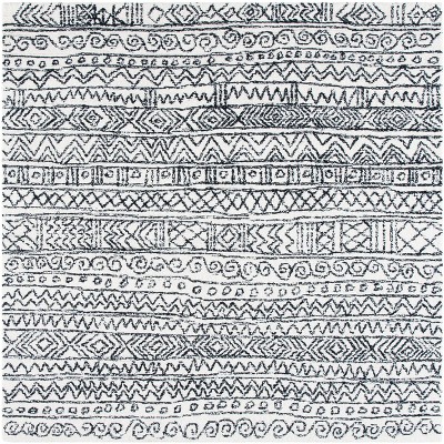 Transform your space with this stunning square area rug, measuring 5 feet by 5 feet. Its intricate oriental pattern in charcoal and ivory exudes a sense of classic elegance, making it a perfect centerpiece for any room. Hand-tufted by skilled artisans in India, this rug is crafted using a blend of wool and cotton with a touch of latex, adding a comfortable and cozy feel underfoot. With its traditional style and simple yet sophisticated design, it complements a range of interiors. At a height of just a quarter inch, it seamlessly fits into your home without disrupting your existing decor. Elevate your living space with this meticulously designed piece that blends timeless aesthetic with modern simplicity.