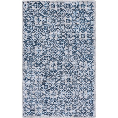 Transform your space with this beautiful 5'0'' x 8'0'' area rug. The soothing blend of blue and ivory complements its traditional style, creating a classic addition to any room. Crafted with care, this medium rectangle rug is hand tufted in India using a thoughtful combination of wool, cotton, and latex. Its 3/8'' height offers a comfortable feel underfoot, making it a lovely choice for living areas, dining rooms, or bedrooms. The elegant craftsmanship of this rug brings warmth and sophistication to your home. Add a piece that stands for artistry and comfort, embracing a timeless style that seamlessly fits into various decor themes.