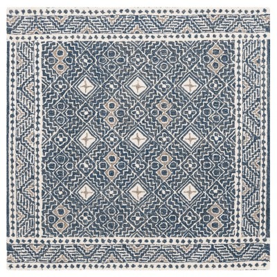 Discover elegance underfoot with our finely crafted square area rug, sized 5' X 5', bringing a delightful blend of blue and ivory to your living space. With a height of just 1/8", this low-profile rug is a seamless addition to any room, providing both comfort and sophistication without overwhelming your decor.