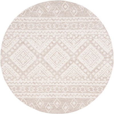 Elevate your home with the timeless elegance of our Hand Tufted Wool-Cotton Area Rug, an exquisite piece of floor art that seamlessly blends tradition with modernity. This stunning 5' x 5' round area rug, carefully crafted in India, features a sophisticated beige and brown color palette that exudes warmth and complements any existing decor.