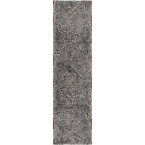 Transform your living space with our exquisite hand-tufted runner rug, a perfect blend of traditional craftsmanship and contemporary style. Adorn your hallway or accent your room with this striking, 2'-3" X 9' ivory and black runner rug that boasts a compelling geometric pattern, reminiscent of classic cultural designs with a modern twist.