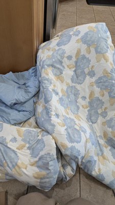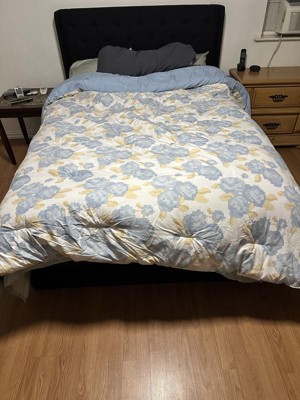 This comforter is very soft, fluffy, and cozy. The light blue color is so beautiful and relaxing. I would definitely not call the design side "floral" at all - it's more like clouds with some random bits of yellow. Maybe I'm not viewing it abstractly enough haha. Either way, we love it and love snuggling up under how soft, cozy, and warm it is!